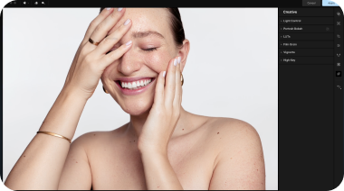 使用AI预设为提升您的照片品质,这些预设可以修饰皮肤、去除瑕疵并呈现每张肖像的最佳效果。