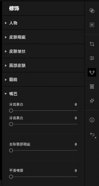 3、五官调整得差不多了,可以继续对皮肤进行美化。Aperty皮肤美化的工具很多,有去除皮肤瑕疵皱纹、平滑面部皮肤、肤色校正、去除黑眼圈等。