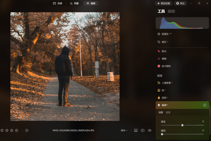 先说结论:可以一定程度上弱化驼背感,但不能真正改变人物姿势。Luminar Neo并没有那种骨骼重塑级别的功能,它更多是通过体积、比例和光影去做视觉上的优化。所以如果是轻微驼背,可以调整;如果是姿势问题比较明显,软件是没办法直接把人“拉直”的。