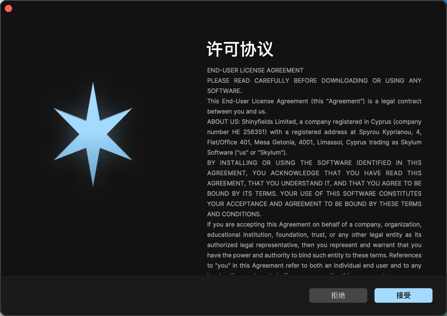 二、安装包下载完毕后双击开始安装,接受许可协议。