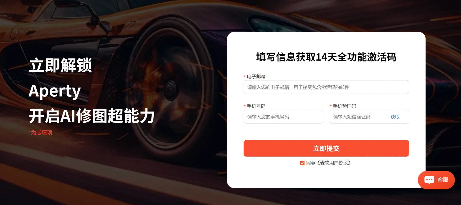 六、之后会跳转至试用激活码获取页面。然后填写相关信息,电子邮箱(请确保邮箱信息填写正确,后续试用激活码也会发送至邮箱)、手机号码、手机验证码;填写完毕后点击立即提交即可获取到相关试用激活码。